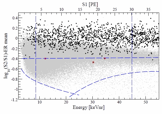 And so, the XENON100 experiment recently released its newest round of results. And, unfortunately, they haven’t seen anything other than what they would expect to see if Dark Matter didn’t exist. The following plot shows what they saw.