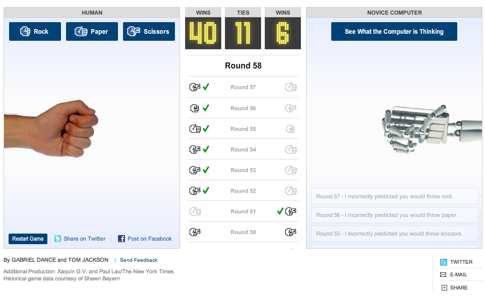 Recently, the New York Times released an interactive version of the game Rock Paper Scissors.